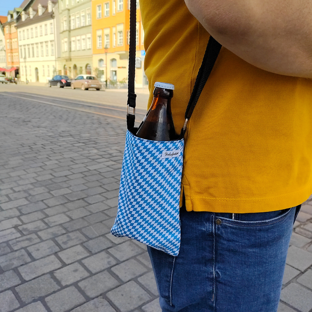 Sommer, Sonnenschein und dann unterwegs ein Weg-Bier, das ist etwas Feines. Aber wie, wenn beide Hände schon voll sind? Ganz einfach: Mit dem Bierbeutel von Firlefaden!