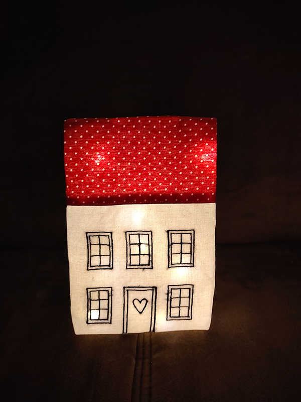 Im Haus befindet sich eine batteriebetriebene Lichterkette, die neben On/Off auch über einen integrierten Timer programmierbar ist, so dass die Häuser pünktlich zur einbrechenden Dunkelheit erstrahlen. Am Boden des Hauses befindet sich eine kleine Öffnung, so dass die Lichterkette leicht zu erreichen ist.