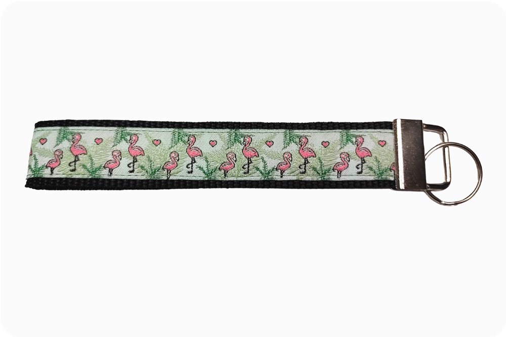 Erhaben und stolz sehen einbeinig stehende Flamingos aus, die auch hier wie in der Natur im Rudel auftreten. Die rosafarbenen Vögel sieht man vor einem hellgrünen Hintergrund, das dunkle Band betont die besondere Gefiederfarbe der schönen Tiere.