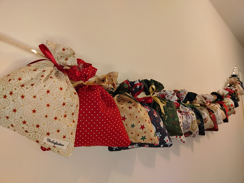 Mit diesem von mir selbst genähten Adventskalender kannst Du Kindern, Großeltern, Freunden und anderen lieben Menschen eine Freude bereiten. Oder Du machst es wie wir und teilst ihn mit Deinem Partner – und Ihr beschenkt Euch abwechselnd?